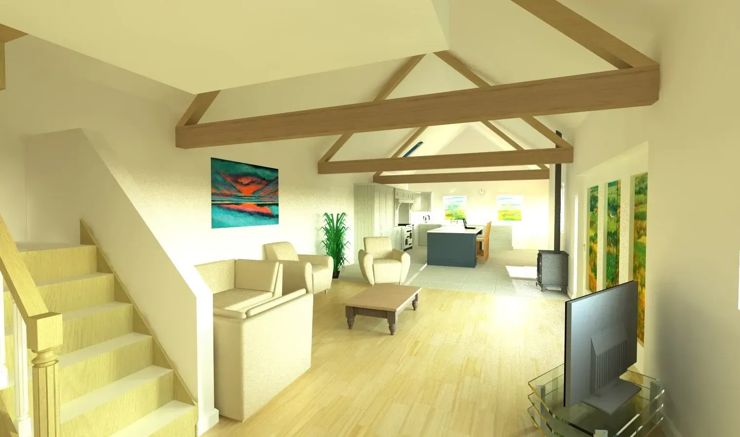 This is where having our CAD software comes into its own, although primarily for designing kitchens, we utilise it for showing people complete interiors.